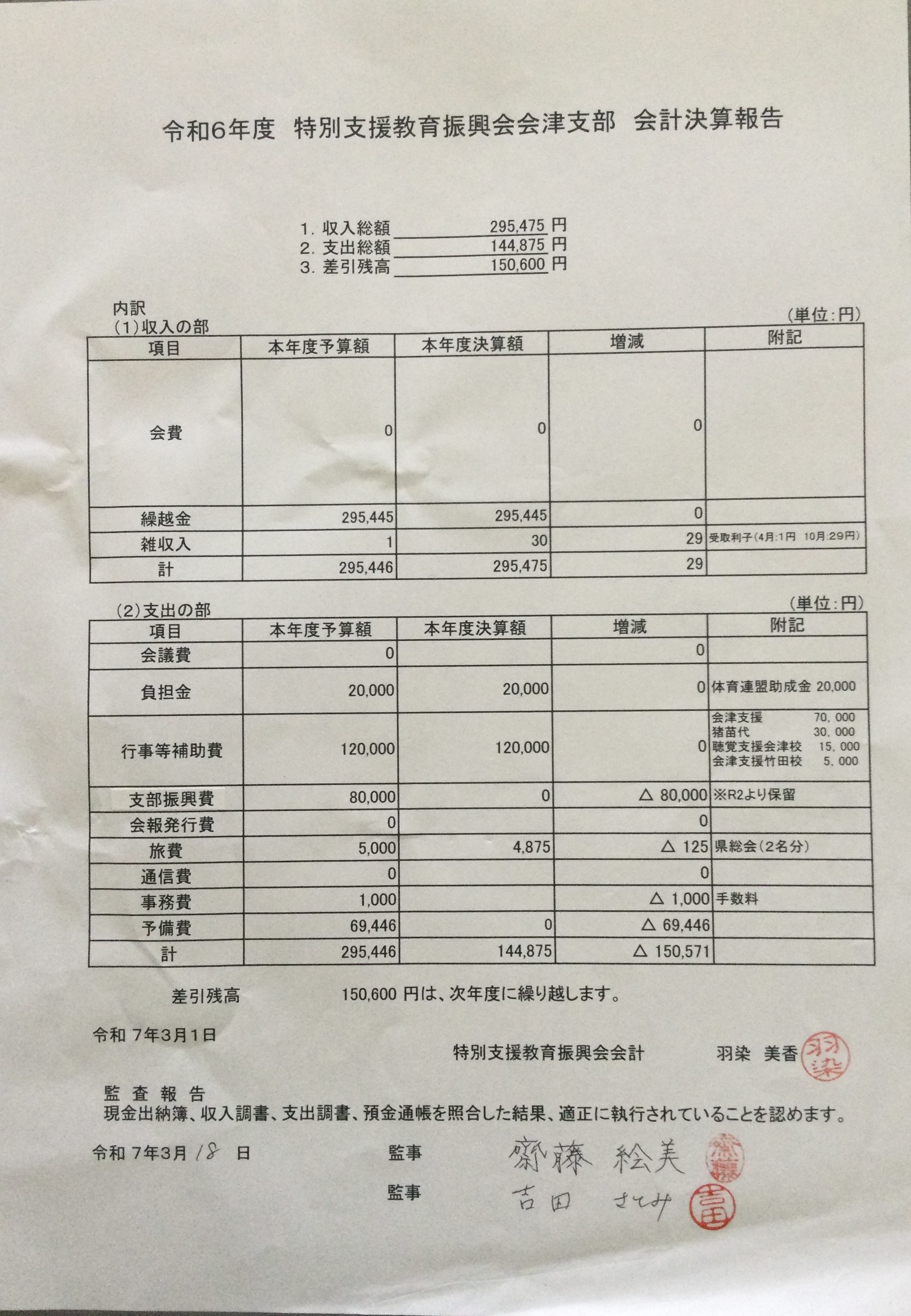 令和8年度に福島県特別支援教育振興会本部が会を閉じるに伴い、会津支部も令和8年度末をもって会を閉じることとなりました。今年度以降役員会、総会は実施しないためホームページにてお知らせいたします。